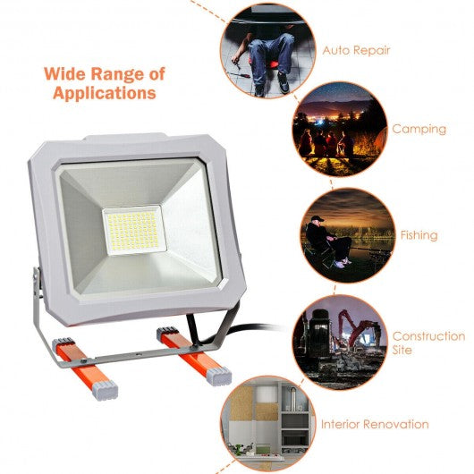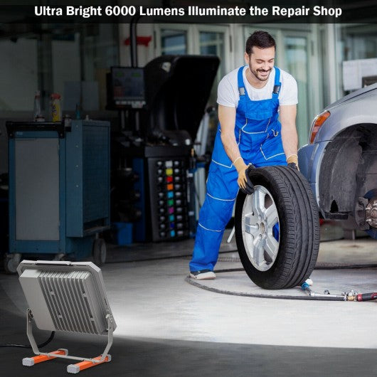 The dim light at night caused a lot of inconvenience to people of different types of work. In order to solve these unnecessary troubles we specially prepared this LED work light. The super bright LED bulb can produce super extra brightness of 6000LM. In addition replacing traditional halogen bulbs with LED lamps greatly saves electricity. The IP65 waterproof rating allows this safety lights to be used outdoors or even on rainy days. With the stand you can put the security light onto the ground. Perfect for camping fishing garage car repair construction site or home decoration. If you are looking for this product don't hesitate to place an order! 6000LM to provide you the extreme brightness Wide lighting range provides you with a clear and bright field of view Aluminum with good heat dissipation performance ensures long service life Lightweight and easy to move and carry to any destination IP65 waterproof grade makes it ideal for outdoor use Replace traditional halogen bulbs with 53W LED saving energy and electricity UL and ETL certification ensure high quality and unser�s safety Suitable for picnic fishing car repair construction site interior decoration