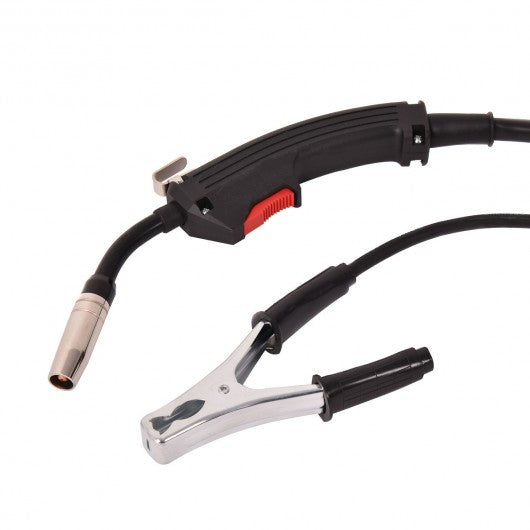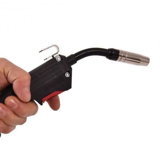 Specification: Material: steel frame and plastic handle Weight: 35 lbs Dimension: 13.5" x 7.5"x 14" Length of the handle: 12" Size of mask:7.5" x 10.5" Length of power cord: 72.5" Cord with welding gun: 65" Voltage: 110V/60HZ Circuit breaker: 30A Mains fuse: 13 A Max open voltage: 37V Max output current: 15% at 105 AMP Max absorbed power: 3.6 KVA Package including? 1 x Welder machine 1 x Welding gun 1 x Welding Wire 1 x Weld mask 1 x Brush