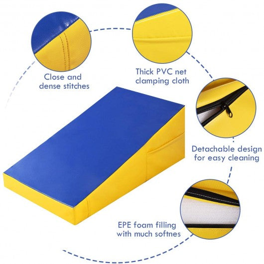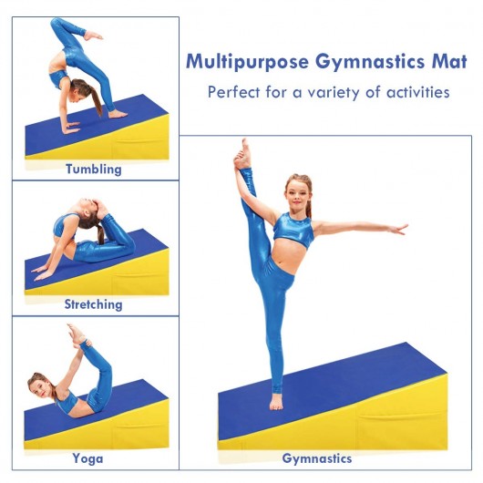 This new incline wedge ramp gym mat is ideal for aerobic exercising and tumbling. The material feels comfortable for workouts. You can play with this ramp mat at home or in the office. The fashionable color and sturdy and durable construction with high-quality foam filled inside are very attractive. The Zip-closed design is easy for cleaning up and disassembly of cover. It is excellent for tumbling exercise programs gymnastics stretching yoga martial arts daily care activities and other uses. If you are looking for a ramp gym mat like this do not hesitate to place an order! Brand new and high quality Sturdy and durable construction Non-toxic and tasteless PVC cover and EPE pearl foam inside Suitable incline angle for comfortable exercise Zip-closed design for easy cleanup and disassembly of cover