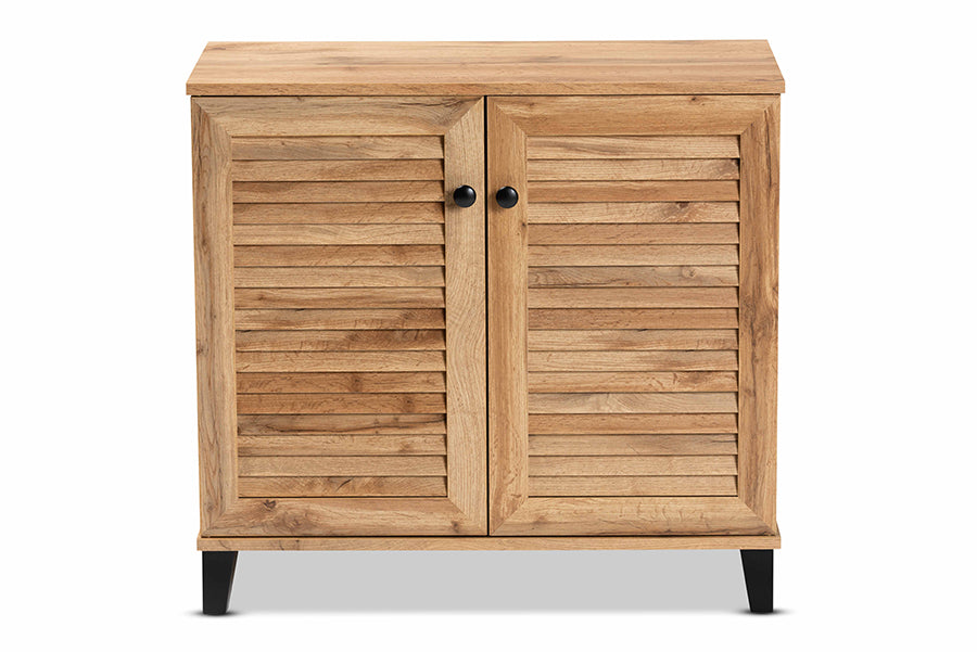 Baxton Studio Coolidge Modern and Contemporary Oak Brown Finished Wood 2-Door Shoe Storage Cabinet