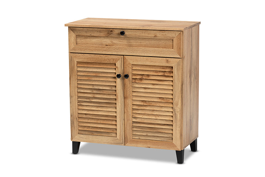 Baxton Studio Coolidge Modern and Contemporary Oak Brown Finished Wood 1-Drawer Shoe Storage Cabinet