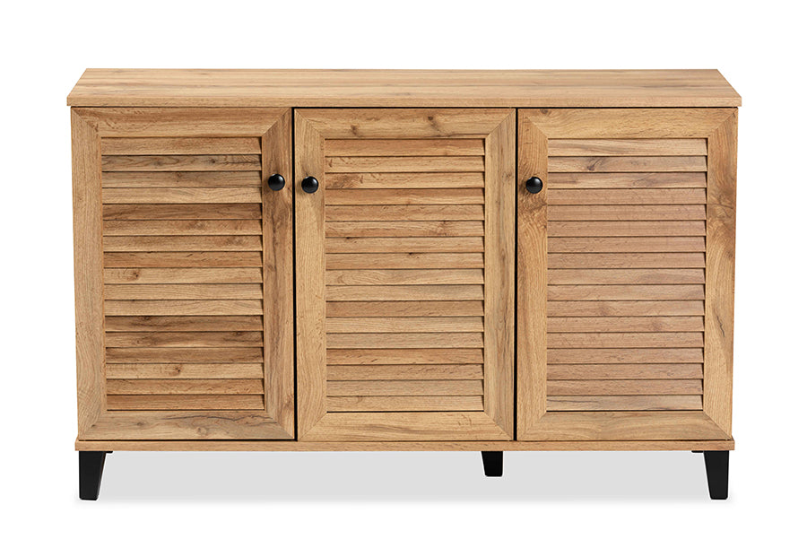 Baxton Studio Coolidge Modern and Contemporary Oak Brown Finished Wood 3-Door Shoe Storage Cabinet
