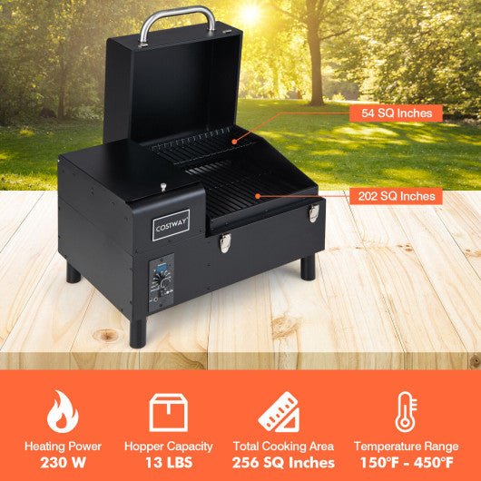 Portable Pellet Grill and Smoker Tabletop with Temperature Probe-Black