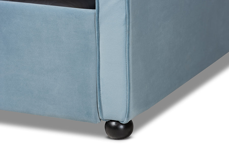 Baxton Studio Freda Transitional and Contemporary Light Blue Velvet Fabric Upholstered and Button Tufted Full Size Daybed with Trundle