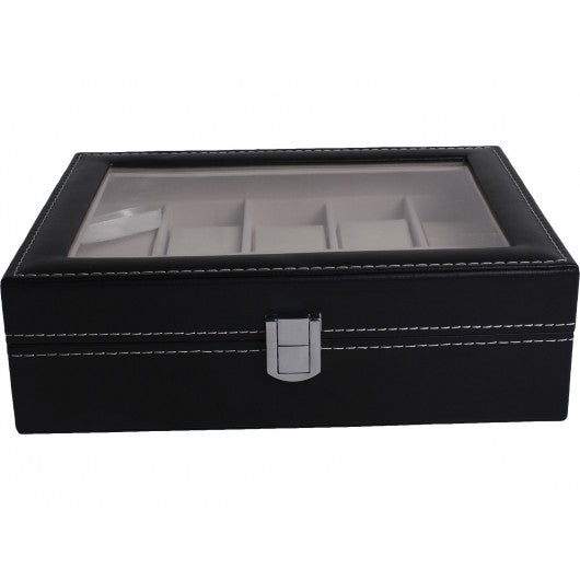 10 Slots PU Leather Watch Box Display Jewelry Case Organizer