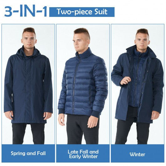 Men's Interchange 3 in 1 Waterproof Detachable Ski Jacket-Navy-L