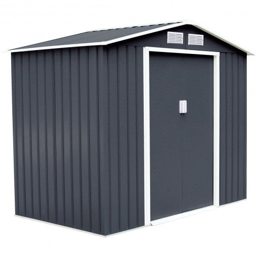 7' x 4' Outdoor Garden Storage Shed Tool House with Sliding Door-Gray