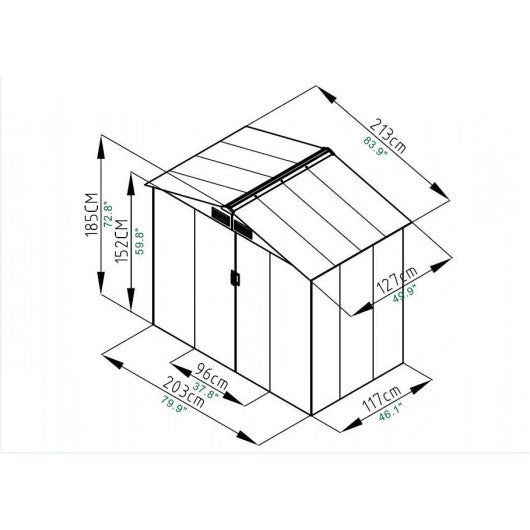 This garden storage house made of durable steel frame is perfect for garden tools storage. When you need additional storage space it would be your practical and economical solution. This garden storage house can provide enough storage space for your lawn and garden crafts bicycles pool supplies and other items. Durable steel frames construction is very sturdy and galvanized steel sheets are resistant to corrosion. This house has two flexible sliding doors and two shutters are breathable and ventilated which helps to reduce the accumulation of moisture in the house. If you are looking for such a garden storage house please don't hesitate to buy one! Brand new and high quality Elegant appearance and a perfect display Durable steel frame for added strength is very sturdy Built with galvanized steel to resist corrosion Panels are pre-cut are pre-drilled for faster assembly 2 flexible sliding doors and 2 ventilation windows is security and adequate ventilation Perfect for garden tools bicycle storage Enough space for you to store things Assembly required