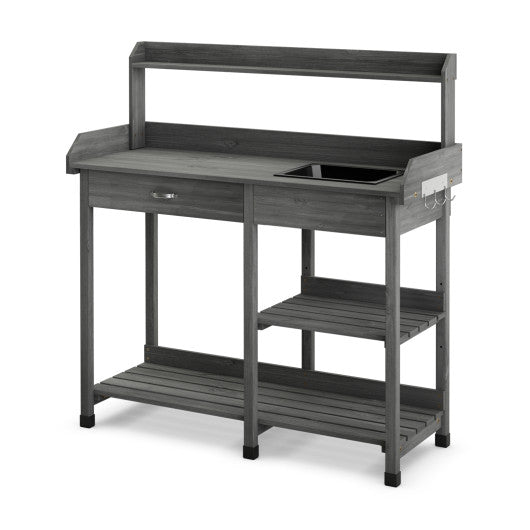 Outdoor Garden Potting Bench Lawn Patio Table Storage Shelf Work Station-Gray
