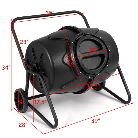 Specification: Color: Black Material: PP iron Weight: 36 lbs Barrel size: 32.5" x 23.5" (L x D) Overall size: 39" x 28" x 34" (L x W x H) Package includes: 1 x Compost tumbler