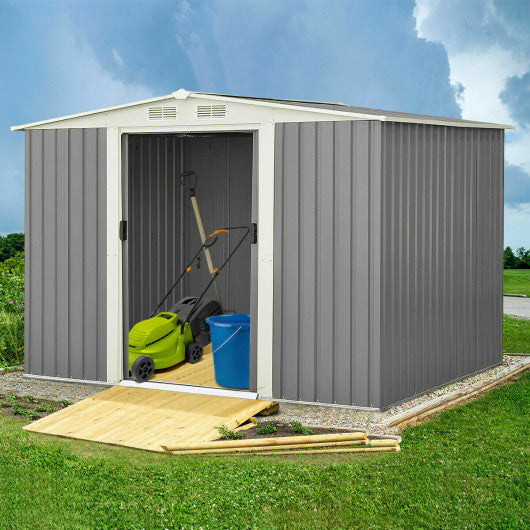 6' x 8' Outdoor Storage Shed Tool House with Sliding Door-Gray