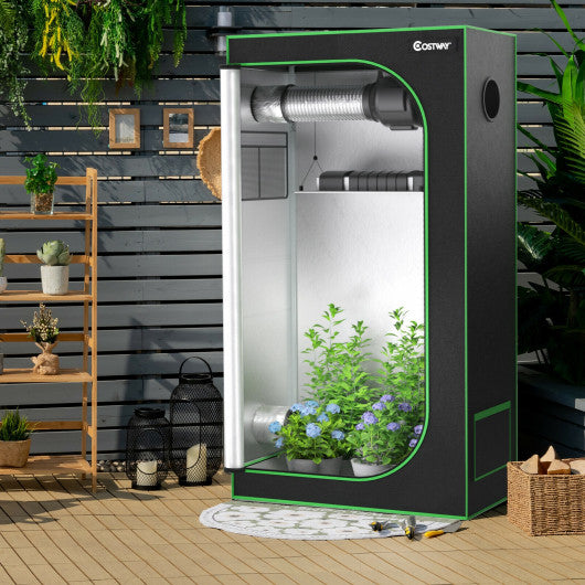 In order to take care of the plant sprout the grow tent creates a safe growing place. Crafted by heavy-duty zinc-plated holes this growing house ensures excellent stability and sturdiness. Plus lined with highly reflective mylar this grow tent will maintain the optimal temperature all-year-round. And the tightly stitched 600D canvas exterior well prevents light leakage. In this way you can cultivate the herbs fruits vegetables and flowers in winter season. In addition multiple vents are designed for filter installation and the bottom mesh window to keep insects out. The large observation window allows you to peek inside conveniently and the inside mesh storage bag for tools placing. Humanized features help you to better operate your gardening work. If you are looking for a growing house like this do not hesitate to place an order! Multiple duct ports can be closed off or installed with filter and fan Bottom mesh windows ensure air circulation and prevent dust Highly-reflective aluminum film lining effectively utilizes the grow light PE coated Oxford exterior with tight stitching keeps warm temperature Heavy-duty zinc-plated top frame ensures load capacity of 132 lbs Large observation window for convenient plants peeking Step-in door with double-head zipper for convenient opening Removable floor tray collects fallen leaves for effortless maintenance Tool-free design needs less time and energy on assembly