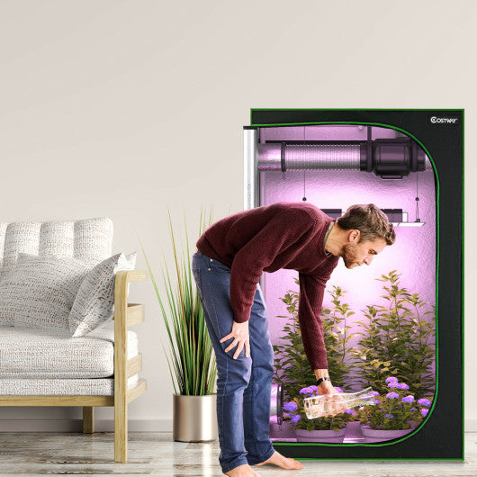 Are you interested in growing flowers or growing your own green food? This plant growing tent is definitely a good choice. Made of high-quality high reflectivity mylar it will create a good light absorbing environment for your plants to thrive. In addition the tent has multiple dual duct socks to facilitate air circulation. And easy-to-open viewing windows are built to help you observe the growth of plants. Besides there is an easy to move floor tray to protect the tent from spills which provides much convenience for your cleaning. Most importantly our grow tent is compact and perfect for indoor use so you can take care of them anytime and anywhere! If you are looking for a patio bar set like this do not hesitate to place an order! 100% high reflectivity mylar keeps all lights in the tent Equipped with high load bearing hanging bars Removable tray is convenient for you to clean the tent Multiple dual duct socks perfect for using the cables ducting and fans Storage bag provide additional space for your plating tools Observation window help you keep an eye of the growth of your plant Made of sturdy metal frame to ensure high stability Hang strap for easy hanging your controller and sensor mount(not included)