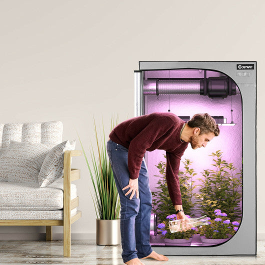 Are you interested in growing flowers or growing your own green food? This plant growing tent is definitely a good choice. Made of high-quality high reflectivity mylar it will create a good light absorbing environment for your plants to thrive. In addition the tent has multiple dual duct socks to facilitate air circulation. And easy-to-open viewing windows are built to help you observe the growth of plants. Besides there is an easy to move floor tray to protect the tent from spills which provides much convenience for your cleaning. Most importantly our grow tent is compact and perfect for indoor use so you can take care of them anytime and anywhere! If you are looking for a patio bar set like this do not hesitate to place an order! 100% high reflectivity mylar keeps all lights in the tent Equipped with high load bearing hanging bars Removable tray is convenient for you to clean the tent Multiple dual duct socks perfect for using the cables ducting and fans Storage bag provide additional space for your plating tools Observation window help you keep an eye of the growth of your plant Made of sturdy metal frame to ensure high stability Hang strap for easy hanging your controller and sensor mount(not included)