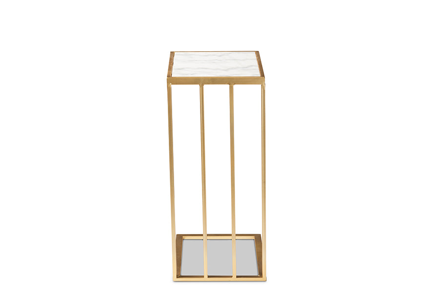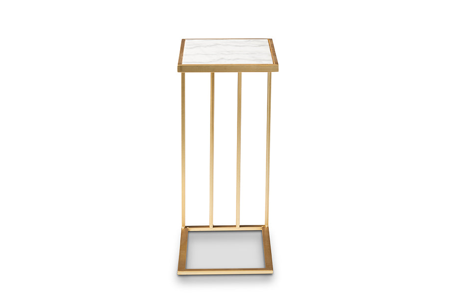 Baxton Studio Parkin Modern and Contemporary Gold Finished Metal C Shaped End Table with Marble Tabletop