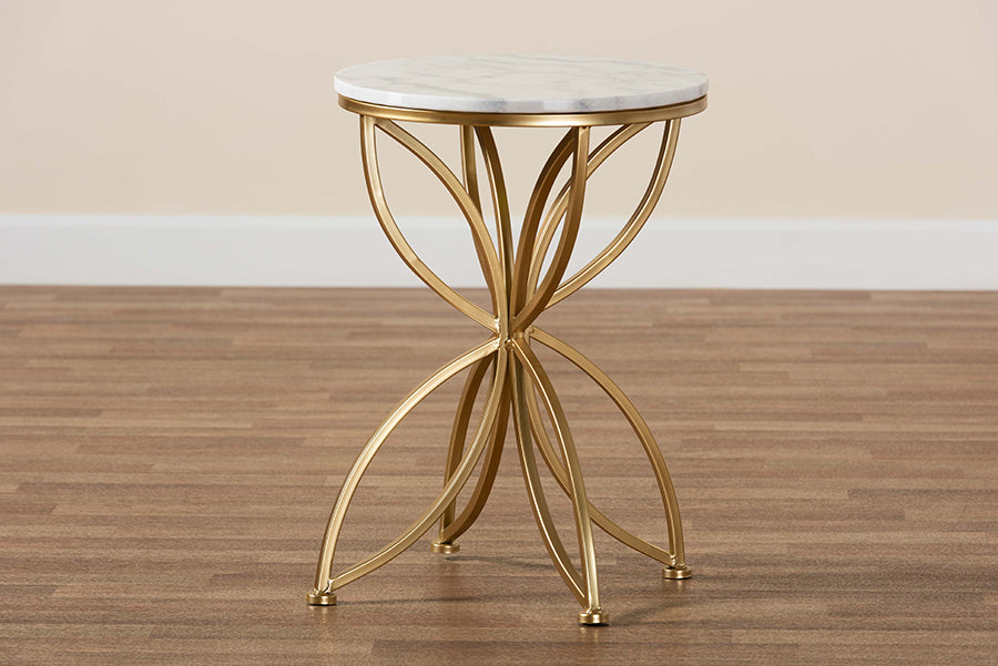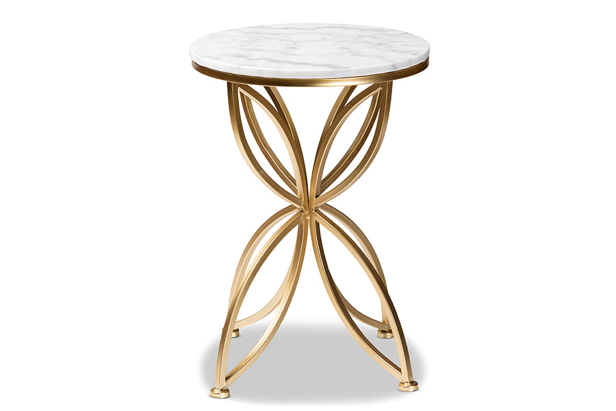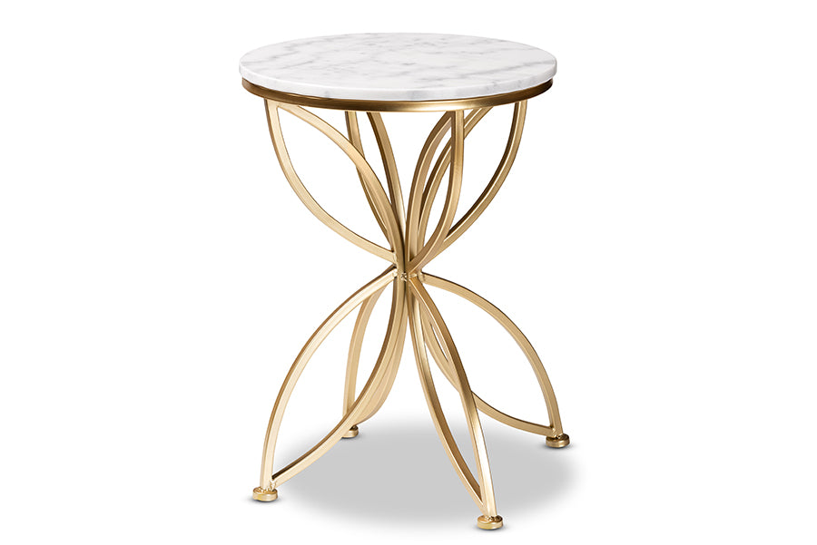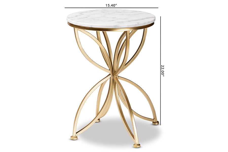 Baxton Studio Jaclyn Modern and Contemporary Gold Finished Metal End Table with Marble Tabletop