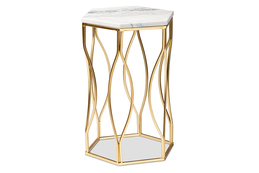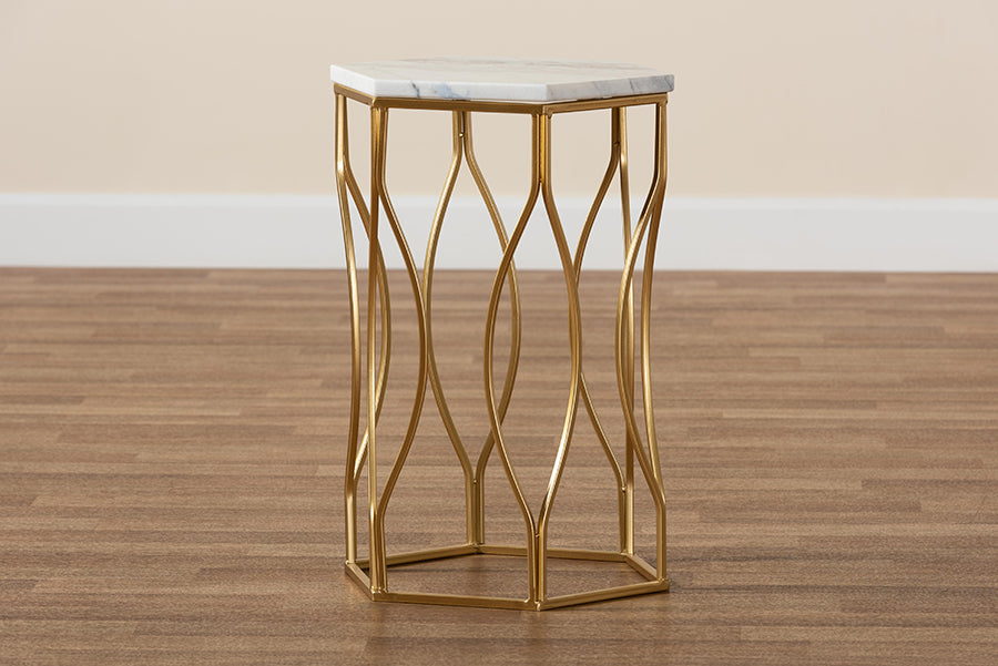 Baxton Studio Kalena Modern and Contemporary Gold Metal End Table with Marble Tabletop