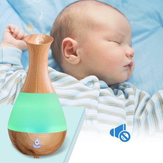 This is our wooden grain essential oils diffuser which is with nice shape and unique design. It gives out ultra fine cool mist with lovely fragrance to relieve yourself from the dryness of air-conditioner which shall offer you a simple healthy and enjoyable way to provide moisture to your skin. 16 colors auto LED light illumination brings relaxing and romantic ambience which helps to enhance your mood for a happy and refreshed life. Compact design and USB interface equipped you can take it on the trip. It is a great decor to your home.If you are looking for such a humidifier don't hesitate to buy one! Brand new and high quality Unique and compact design you can take it to anywhere Coated with wood grain it looks very natural and primitive Aroma diffuser can hold up to 235ml of water Application indoor area is around 10-13m2 Automatic power off when water used up which ensures safety Adopted ultrasonic technology this diffuser is extremely quiet when working USB interface equipped you can use it more conveniently 16 colors auto LED light two mode (steady onanging color automatically) creates romantic atmosphere which helps you escape the hustle and bustle of modern life It gives out ultra fine and smooth mist which can soften and moisten dry and chapped skin in winter It can be use as an essential oil diffuser or a humidifier Humidify the air make breathing easier and reduce cough and sinus congestion due to colds allergies and flu