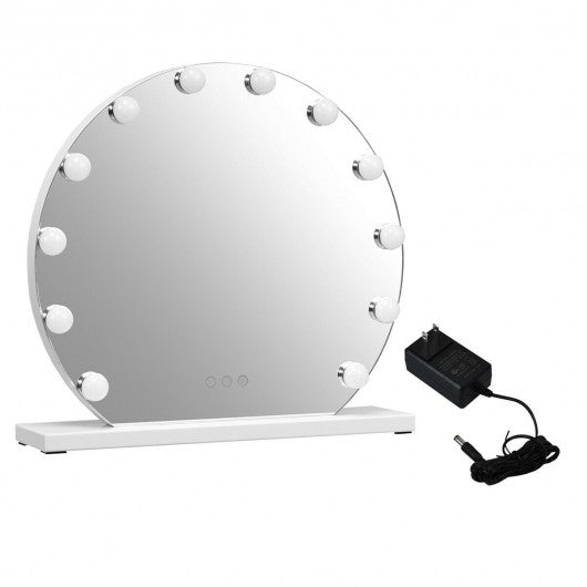 If you are looking for a mirror ideal for dark environment this makeup mirror with LED lights fits in exactly with your wishes. Equipped with vanity mirror and LED lights this product can more clearly reflect your beauty. Three light modes and adjustable brightness design allow you to make up in different environments. Besides smart touch control is easy to operate. It only takes one click to illuminate your beauty. Take this stylish and beautiful mirror to decorate your bathroom bedroom and dressing room and makeup in front of it everyday. Large mirror and LED lights clearly reflect your beauty 3 color 12 Dimmable Led Bulbs cold light for indoor use and warm light for dark use Adjustable brightness for making up in different environments Sturdy base with anti-slip pads increasing stability Modern and beautiful appearance fit any decor of your bedroom dressing room Smart touch control easy to operate UL certified plug safer use mirror