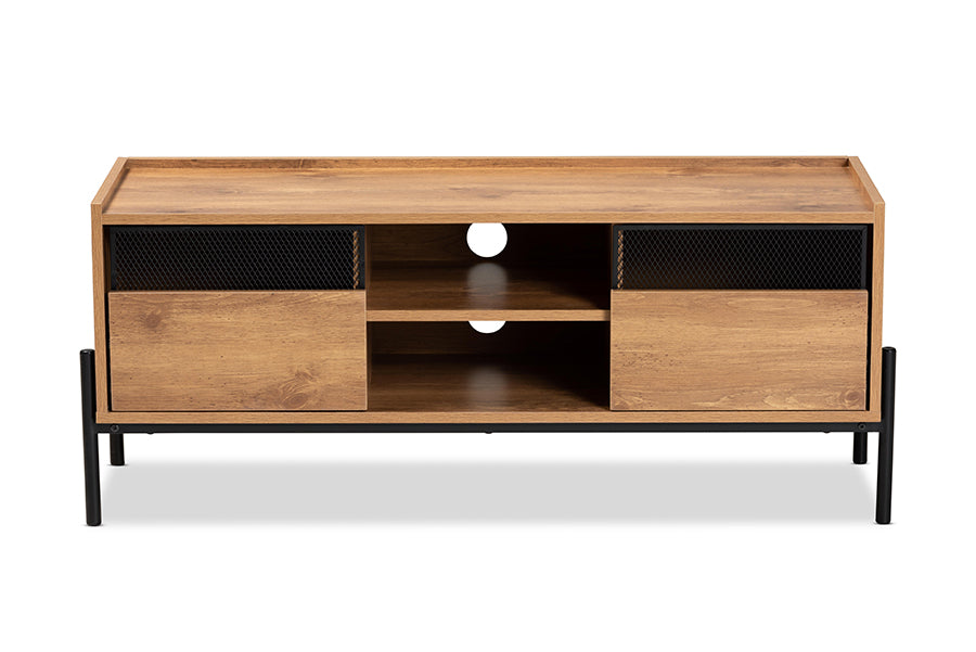 Baxton Studio Tasman Modern and Contemporary Industrial Natural Brown Finished Wood and Black Metal 2-Door TV Stand