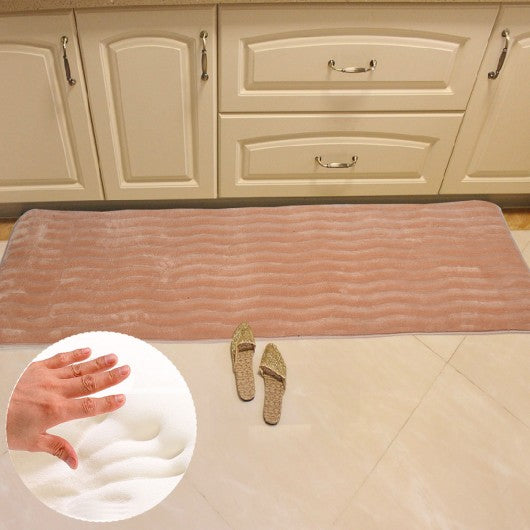 This is the comfort kitchen mat which combines elegant design with deluxe commercial-grade ergonomic anti-fatigue foam for extreme comfort. This kind of coral velvet mat has an important characteristic. That is the memory foam. There is a amazing phenomenon with the memory form. When you stepped on it the mat sink with the shape of the foot when you go away the mat back to the original automatically! If you are looking for the kitchen mat like that don't hesitate to buy it! Brand new and good quality. Stylish design Soft foam makes standing extra comfortable The memory foam make the foot shape back to original automatically Suitable for the bathroom toilet shower room bathtub With a shock-absorbing non-slip effect anti-static