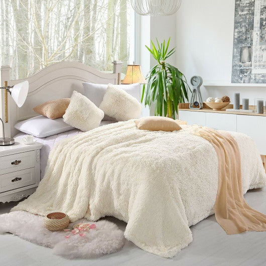 Nothing makes your time more enjoyable than being snug under this nice throw blanket! This blanket is designed with double side comfort one side is shaggy fur and the other side is smooth velvet. It is skin-friendly durable and elegant in texture. You can use it as a warm bed sheet a comfort and luxury sofa blanket a lightweight air-conditioning blanket or a lovely pet blanket. Machine washable in cold water with a gentle cycle. It will be an excellent gift choice for someone you care about. Note: Shaking the blanket to remove extra fur when you use it first time. If you are looking for a blanket like this do not hesitate to place an order! Double-side design of shaggy fur and velvet provide superior comfort Appropriate thickness good at keeping warm in chilly nights Machine washable makes it effortless to keep it clean Durable craft ensures superior resistance to fading and shedding Suitable both for bed and couch to keep warm and comfortable Luxurious and elegant appearance perfect as a decoration 88" x 77" queen size for covering feet up to shoulder level for snuggling and relaxing