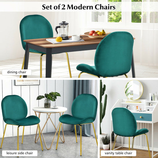 Set of 2 Velvet Accent Chairs with Gold Metal Legs-Green
