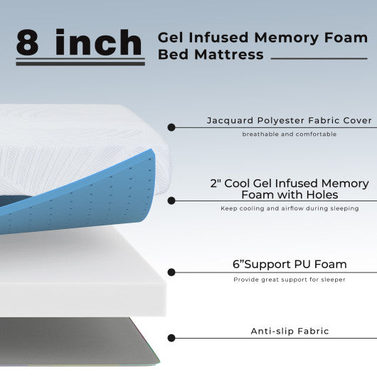 8 Inch Gel Infused Memory Foam Mattress Firm Hybrid Pressure Relief-Queen Size
