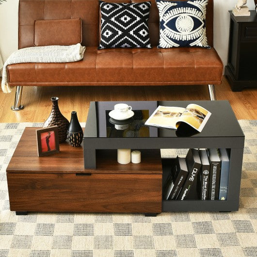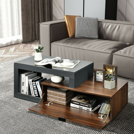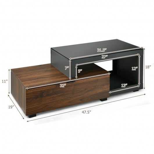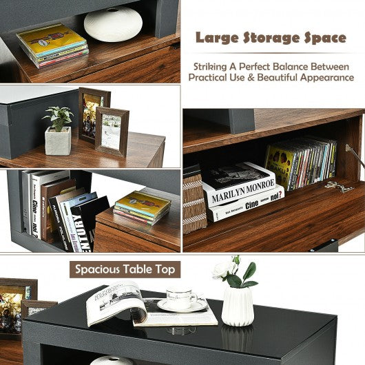 Modern Chic Glass Top Cocktail Coffee Table with Storage Cabinet
