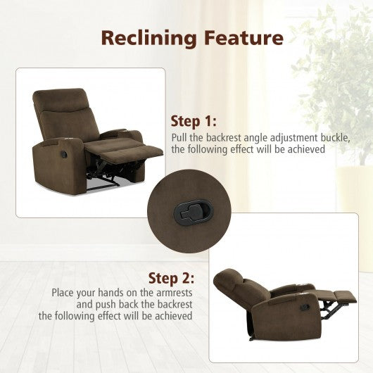 Recliner Chair Single Sofa Lounger with Arm Storage and Cup Holder for Living Room-Coffee