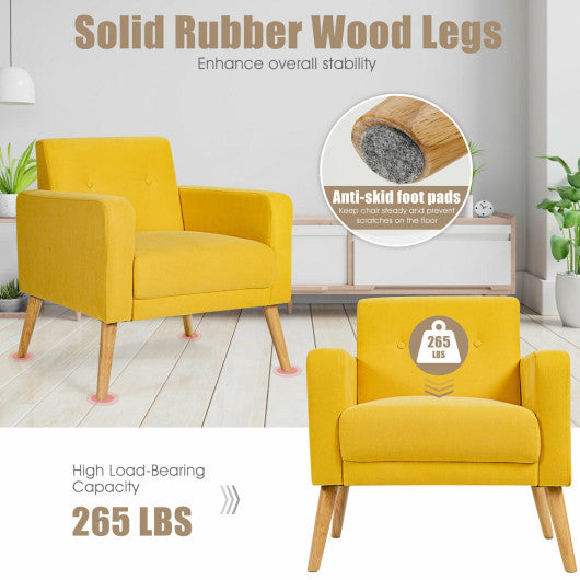 Modern Accent Chair Upholstered Linen Armchair with Rubber Wood Legs-Yellow