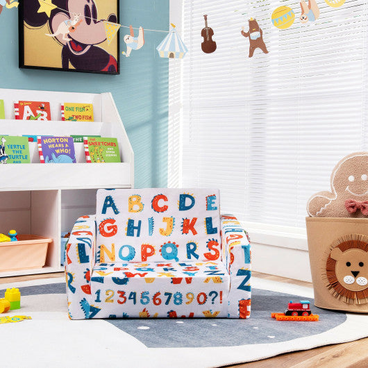 2-in-1 Convertible Kids Sofa with Velvet Fabric-Multicolor