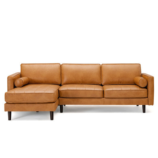 105 Feet Air Leather L-Shaped Sectional Sofa with Chaise Lounge and 2 Bolster Pillows
