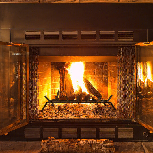 This heavy-duty iron fireplace grate will be a functional tool for you to burn firewood. Constructed of high-grade wrought iron with heat-proof coating the fire grate not only possesses high stability but also resists well to ultra-high temperatures. 7 supporting bars with 1/2" thickness ensures strong load capacity. And the V-shaped design makes it easier to burn the logs. Additionally the raised base ensures good air circulation so firewood can burn for a longer time. This compact fire grate will be a perfect addition to the chimney hearth fireplace outdoor fire pit and so on. If you are looking for such a product do not hesitate to take it to your home! Made of solid wrought iron for high stability Heat-proof coating enables the fireplace grate to withstand 1472°F heat 1/2" thickened iron bars for 110 lbs strong weight capacity Raised base ensures good airflow for a better burning effect V-shaped design makes firewood close to the fire for quick lighting Make the burning area clean and tidy Ideal for both indoor and outdoor occasions Easy to install thanks to the simple structure and clear instruction