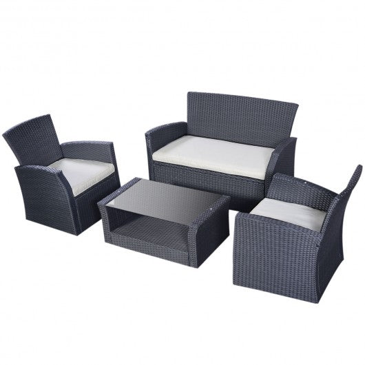 4 pcs Patio Wicker Rattan Seat Cushioned Set