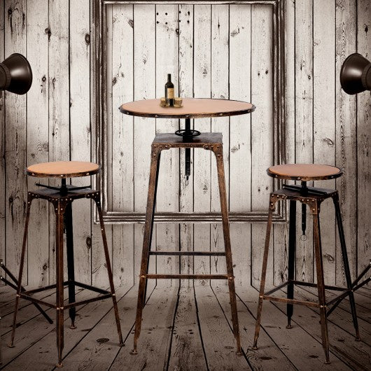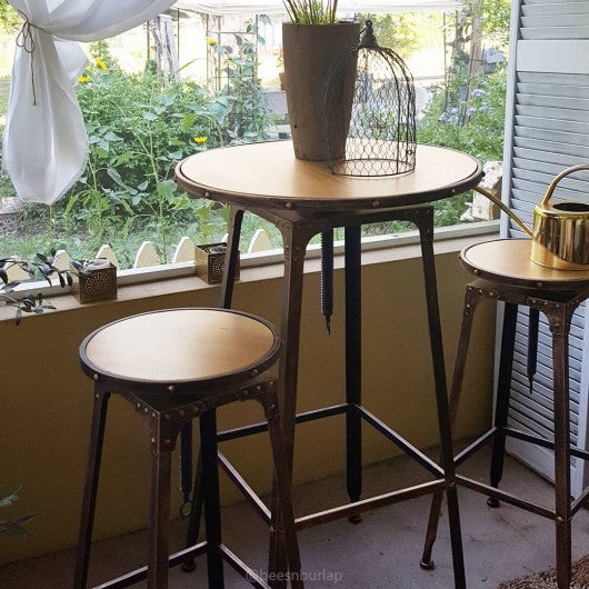 This 3 pcs kitchen and dining furniture sets with antique design will perfectly have your dining room more appealing. It’s ideal for your indoor living spaces. It is made of industrial steel and the seat tops are made of New Zealand pine wood that will let user feel relaxed and comfortable. It is a great choice to have this 3 pieces table and chairs sets in your dining room. Frame made of industrial steel Beautiful high temperature industrial finish Seat top made of New Zealand pine wood Durable and comfortable Adjustable height on the table and stools Fully assembled and ready to use