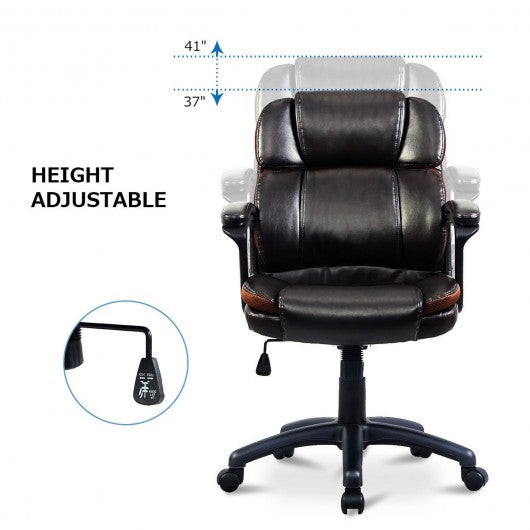 Specification: Weight: About 28 lbs Color: Dark brown Load capacity: 264 lbs Tested for: 120-150 kg (264-330lbs) dynamic state Overall dimension: 24.5" x 28" x 37"-41" Backrest size: 19.5" x 19.5" Seat size: 19.5" x 18.5" Adjustable seat height: 18"-22" Package includes: 1 x Office chair