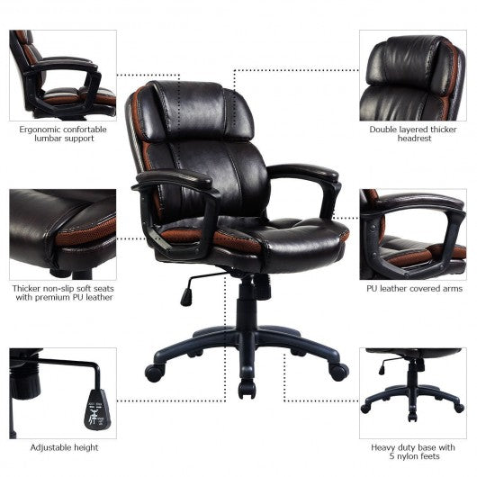 The office chair with ergonomic design has comfortable back and arms support will allow you enjoy the long time work without felling the strain in the back. Designed in an ergonomic style this chair provides superior comfort for people who have intense working days.The pneumatic gas seat easily and effectively adjusted from seat to desk on workstation. 360 degree swivel wheel and chair can be more flexible in the working space which will allow you have comfortable and safe experience during busy working days. The professional size and stylish look makes the chair ideal for any conference room or office seating. Brand new New modern style beatiful generous and strong practicability Comfortable attractive supportive Pu leather easy to clean Solid construction Comfortable arm rests 360 degree swivel wheel and chair can run smoothly on floor Height adjusted by pneumatic gas lift