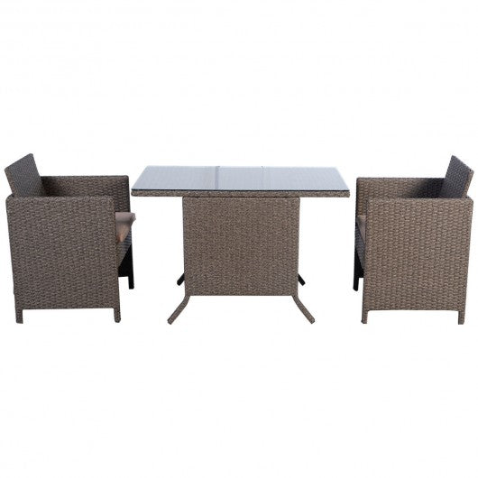 3 pcs Cushioned Outdoor Rattan Wicker Table and Chair