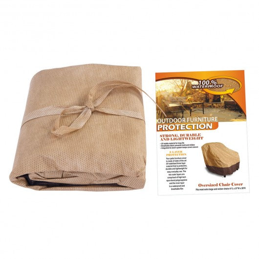 This cover combine style and function to provide ultimate protection for your chaise. It helps chairs against the wind rain and storm and ultraviolet ray and always keep your furniture in a good condition. This cover is manufactured for heavy duty which will protect your wicker from most of the bad weather. The color use a visually-appealing tan color(top) and brown color (bottom) that complements just about outdoor decor package. There are four belts for fixing in over the chaise. Moreover it is convenient to clean with a damp cloth. It is suitable for the people who would like to protect chaises don't hesitate to buy it! High quality and brand new100% Waterproof Protect from the ultraviolet ray Heavy duty to protect your wicker from bad weather Visually-appealing two color tan and brown With four belts for fixing in over the chaise Suitable for wicker chair with size 41"L × 37"W × 39"H