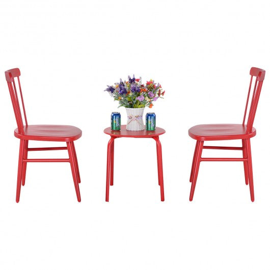 This 3-piece round table chair set is ideal for relaxing reading an interesting book or enjoy a meal with friends. Made of heavy duty steel it provides sturdy frame and long service time. The table set can be used for indoor and outdoor settings. The vibrant color of this table chair set will decorate your modern outdoor space. The smooth surface of the furniture set is protected by powder coat which can prevent from scratch and can be easy to clean. It is easy to assemble. This round table chair set will offer you different experiences in your indoors and outdoors. Do not hesitate to buy one! Brand new and high quality Beautiful and decorate your room and patio Perfect for indoor and outdoor use Made of heavy duty steel frame sturdy and durable Smooth surface easy to clean Power coat finished to protect this furniture set from scratch Simple assemble needed and all the hardware included