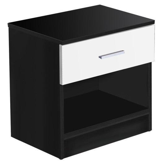 This 3-piece bedroom furniture set with modern design will perfectly have you feel refreshed in the bedroom. Thanks to its contemporary styling and sleek simple lines this 3 piece bedroom furniture set including a wardrobe a night stand and a 4 drawer chest can coordinate well with virtually any bedroom decor. The beautiful black finish on the contemporary bedroom furniture set will surely be compatible with any bedroom decor. It is an excellent choice to have this 3-piece bedroom furniture set in your home. Brand new and high quality Modern and elegant style 3 piece bedroom furniture set including a wardrobe a nightstand and a 4 drawer chest Constructed of high quality non-toxic material with a high gloss on the surface Easy-access open storage spaces With handles made of aluminum alloy Assembly required