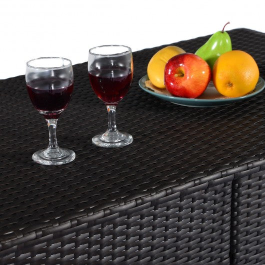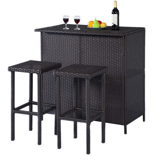 3 pcs Patio Outdoor Rattan Wicker Bar Table and 2 Stools
