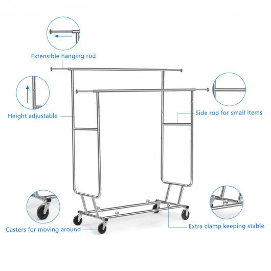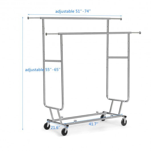 Double Commercial Collapsible Clothing Rolling Garment Rack