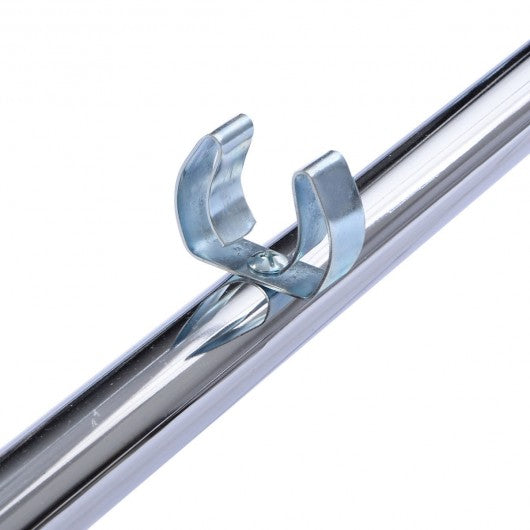 Specification: Material: Chromed-plated iron Adjustable length: 51"-74" Width: 21.6" Height: 55"-65" Weight Capacity: 200 lbs for each tube