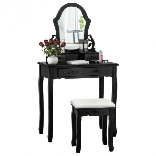 Vanity Makeup Dressing Table with a Mirror and 4 Drawers-Black
