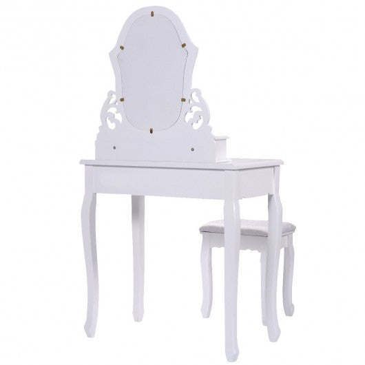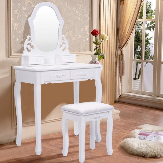 White Vanity Makeup Dressing Table with Mirror + 4 Drawers