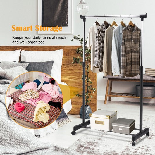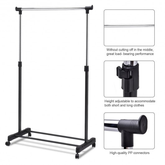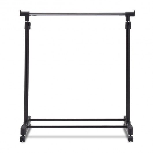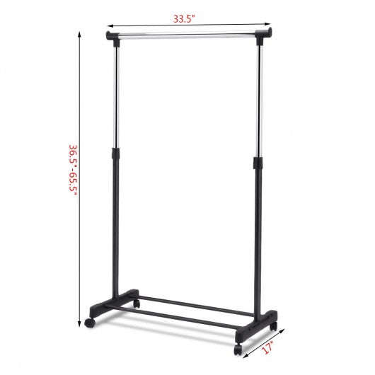 This clothes rack with single-bar and vertically stretching stand is excellent for indoor or outdoor use and will be a good helper to have your clothes in well order. The concise and practical garment rack is an ideal addtion to a household that helps organize your clothes. Featuring premium powder-coated steel and plastic this single-bar vertically-stretching stand clothes rack offers better bearing capacity and a long lifespan. Easy to set up and store you can place the rack at anywhere you want. This attractive and functional garment rack is a nice addition to any laundry room bedroom or foyer. Don't hesitate to add it to your cart! Brand new and high quality Single-bar design Top-grade powder-coated steel and plastic offers better bearing capacity and a long lifespan Vertically-stretching design height-adjustable Casters for easy moving 2 of them feature brake and lock function Easy to set up and store The vertically-stretching design enables the child to hang clothes easily With casters it can smoothly move on the floor and two of casters can be locked in place