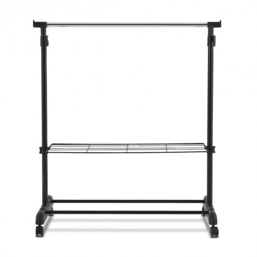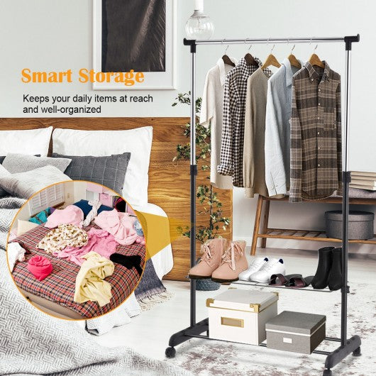 Rolling Clothes Hanger with Height Adjustable Shoe Rack