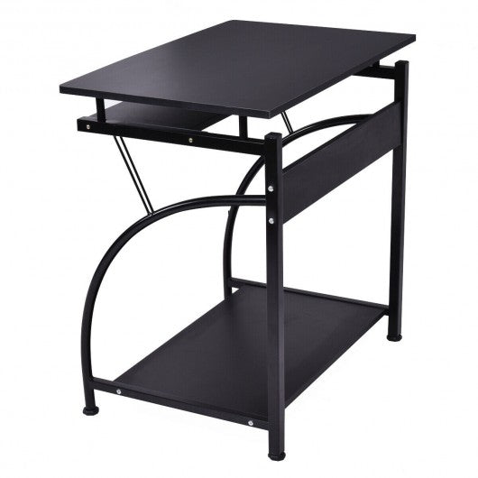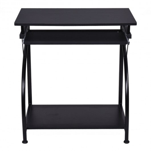 The computer desk with a chic but pratical design provides you with ample working surface and makes it comfortable to work with a computer or have your daliy supplies organaized. The desk is a fabulous solution for a youth bedroom or anywhere you need a compact option for writing reading and more. It features a smooth slide-out keyboard shelf and a full size workstation allowing you to lay out your tasks and dedicate yourself to what you've focused on. An extra bottom shelf provides space for the computer host or books. Transform your limited home office space with this sleek and attractive table get your own convenience and enjoy the sufficient workspace! This computer desk can provide you with comfortable working space don't hesitate to buy it. Brand new and high quality. Powder-coated metal frame anti-corrosion anti-rust Sturdy and spacious wood workstation A smoothly slide-out key board shelf An additional bottom shelf Ideal for business or personal use Assembly required